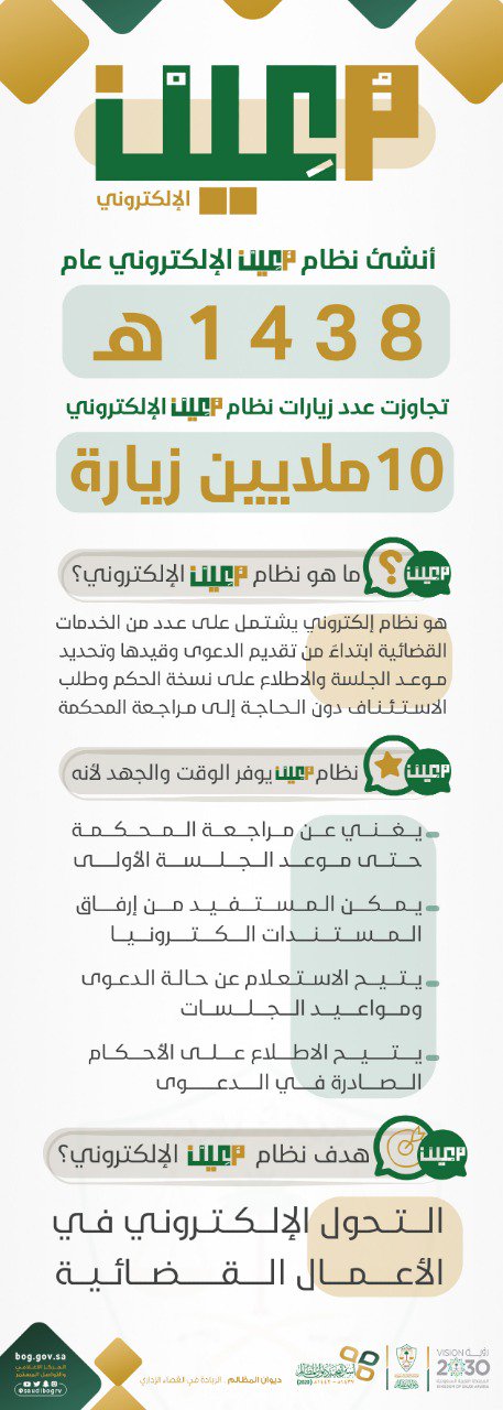 ديوان المظالم No Twitter نظام معين الإلكتروني يسجل 10 ملايين زيارة منذ تدشينه ديوان المظالم مبادرة نشر