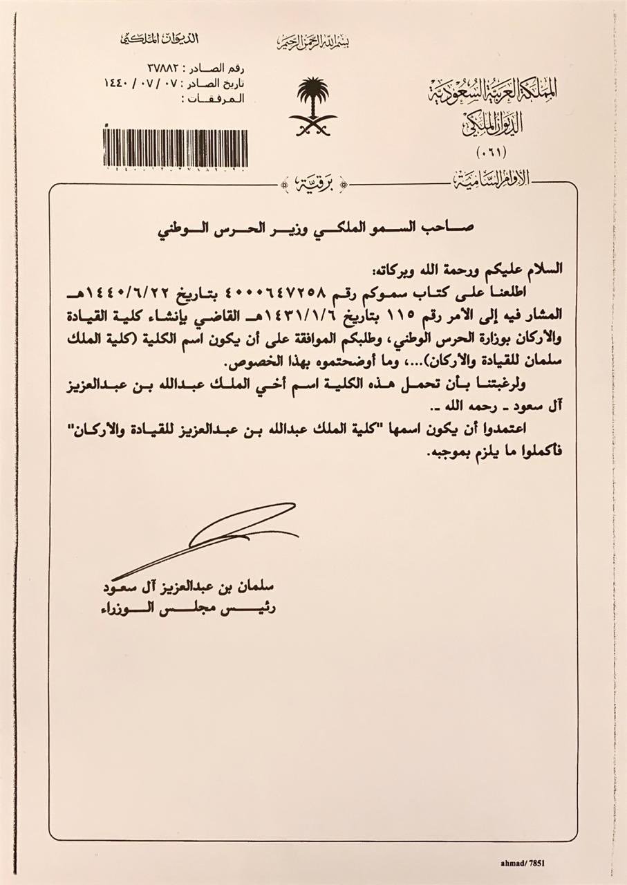بن هباس V Twitter رفع سمو وزير الحرس الوطني طلبا بتسمية كلية القيادة والأركان بوزارة الحرس الوطني بإسم خادم الحرمين الشريفين الملك سلمان بن عبدالعزيز الا ان الملك أمر ان تسمى