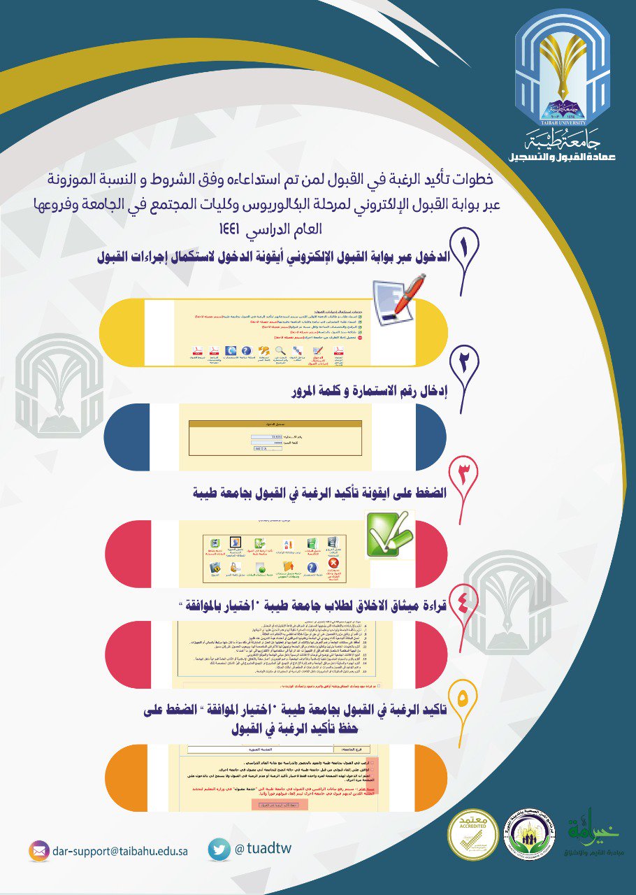 الـ قـ بـ ول و التسجيل On Twitter مرحبا بكم الطلاب و الطالبات من تم قبولهم و صدر لهم رقم جامعي ترحب بكم جامعة طيبة و Tuadtw الانضمام لها وتتمنى لكم