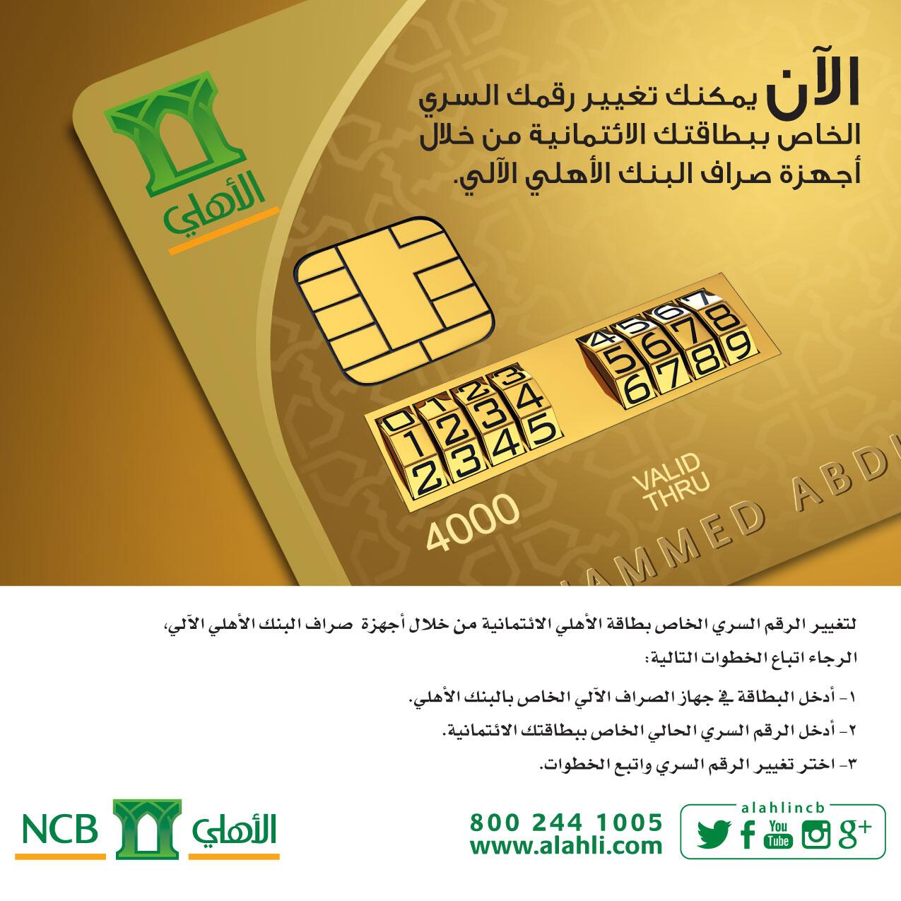 البنك الأهلي التجاري Twitterren الآن من خلال أجهزة صراف البنك الأهلي يمكنك تغيير الرقم السري الخاص ب بطاقات الأهلي الائتمانية Http T Co Iew6eybqog