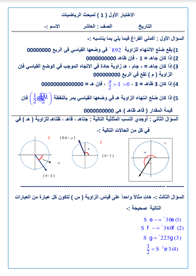 امتحان رياضيات الصف العاشر الشهر الاول الفصل الثاني1