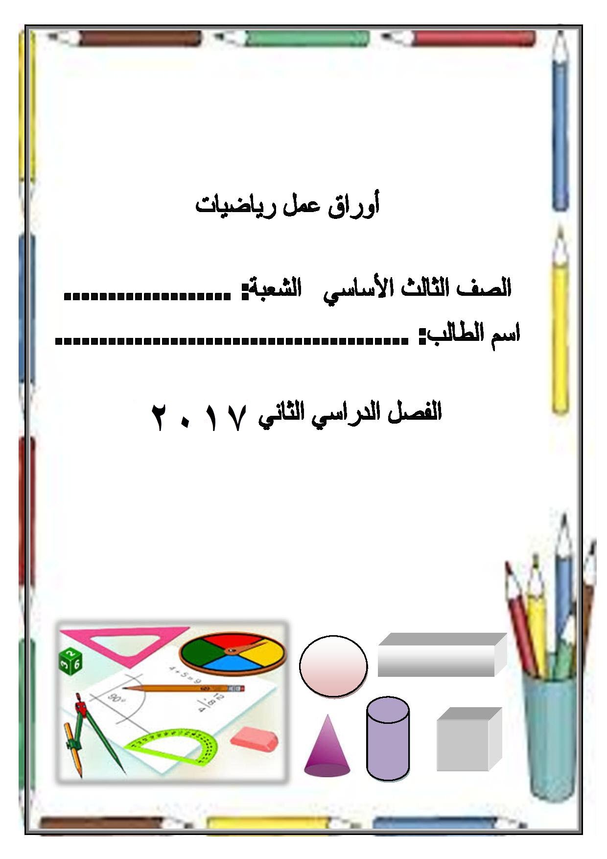 كراسة تحتوي على 44 وراق عمل شاملة لمبحث الرياضيات للصف الثالث الفصل الثاني منتديات صقر الجنوب