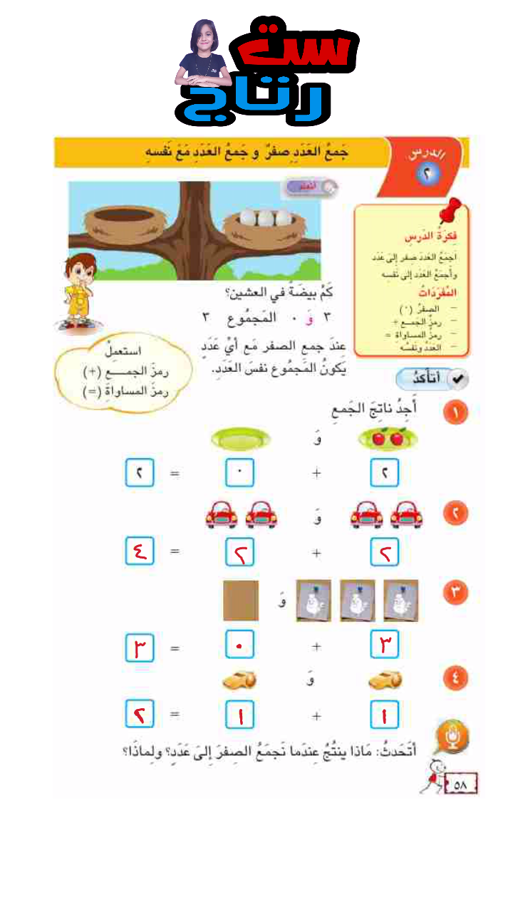 حل رياضيات صف الاول ابتدائي صفحة 57 و 58