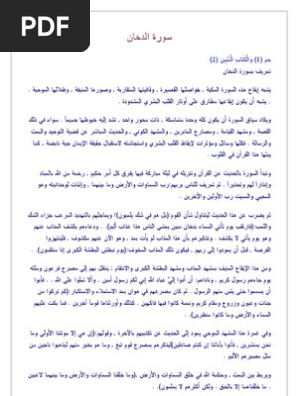 سورة الدخان Pdf مكتوبة بالتشكيل سورة الدخان كاملة بالرسم العثماني المصطبة