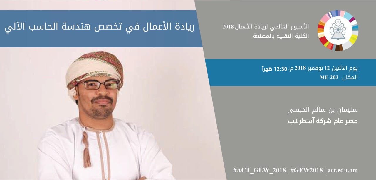 O Xrhsths جامعة التقنية والعلوم التطبيقية بالمصنعة Sto Twitter طلابنا في تخصص هندسة الحاسوب ننتظركم يوم الأثنين في القاعة Me203 حيث اللقاء المترقب مع سليمان الحبسي مدير عام شركة آسطرلاب Act Gew 2018